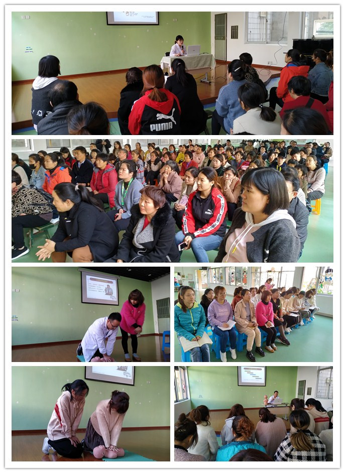 11月14日下午,急诊科周明医生为老师们进行了心肺复苏急救技能培训。周医生重点强调了急救一定要抓住“黄金5分钟”,随后详细讲解了心肺复苏的步骤, 并现场示范。老师们积极参与实践,基本掌握心肺复苏急救技能的要点。