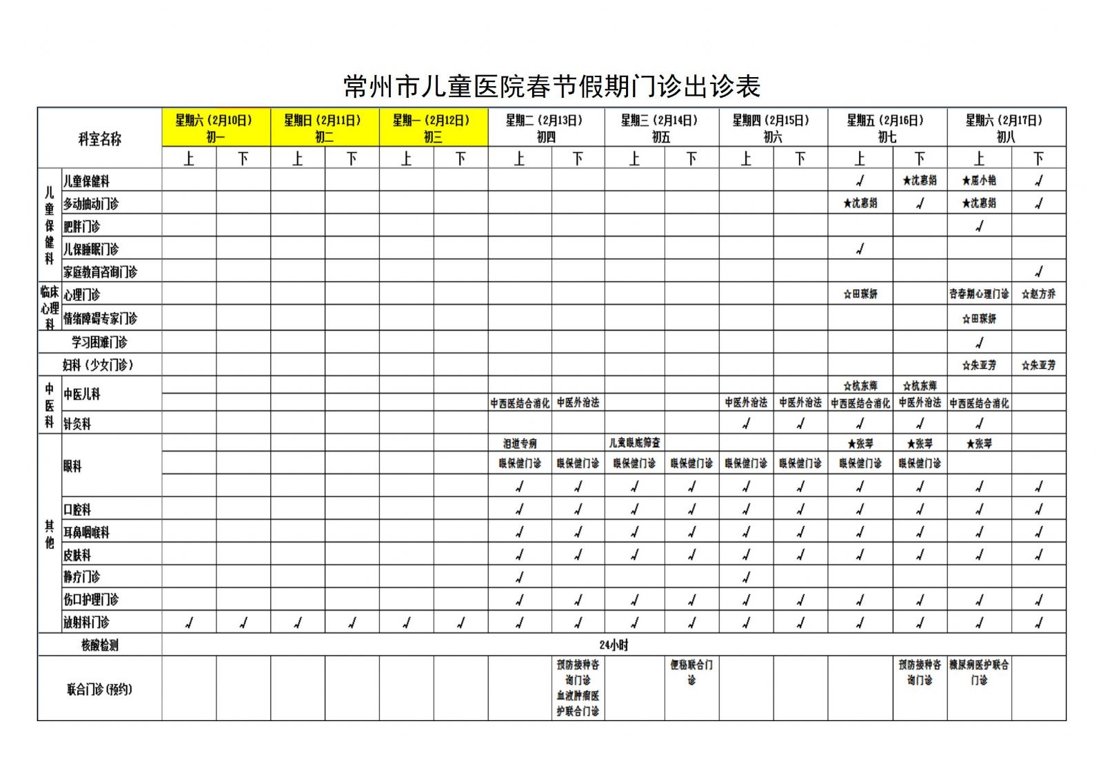 常州市儿童医院2024年春节门急诊开诊情况通知