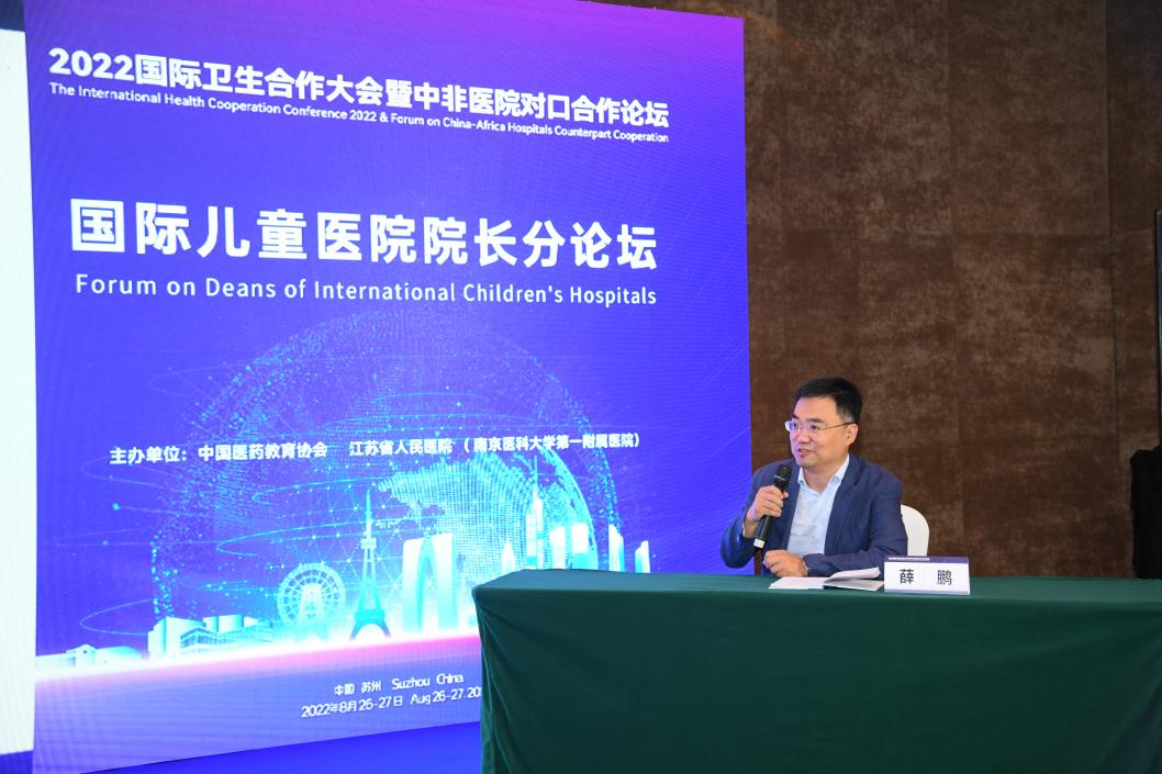 为深入推进全球卫生健康领域的国际交流与合作,共同打造国际卫生健康事业高质量交流平台,加快推动构建人类卫生健康共同体,8月27日,“2022 国际卫生合作大会暨中非医院对口合作论坛——国际儿童医院院长分论坛”在苏州拉开帷幕。国际国内院士、院长和知名专家共计200余人参会研讨。国内外知名儿童医院管理者作主题演讲,常州市儿童医院党委书记、院长薛鹏受邀参会。